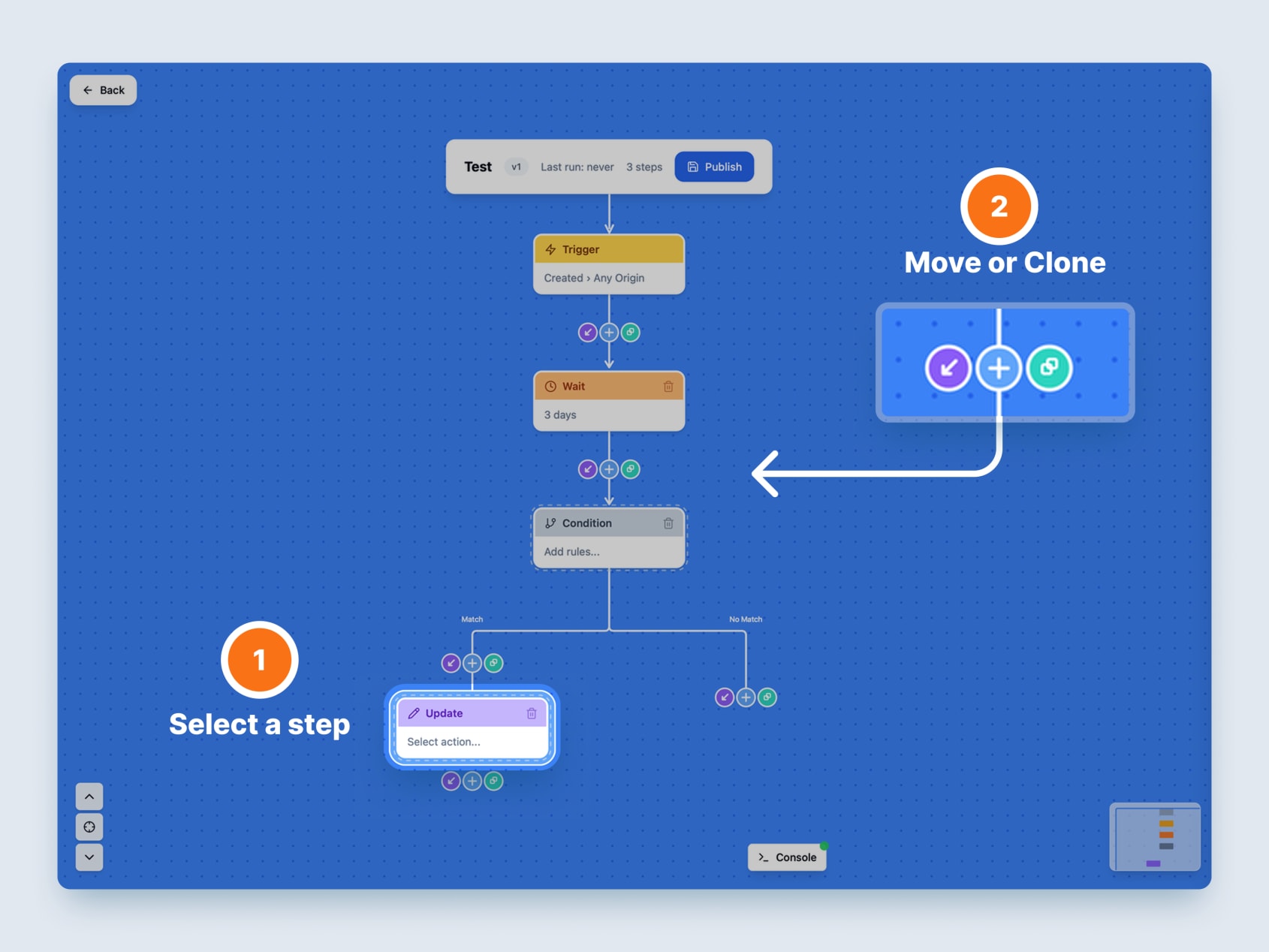 Improved the visual design and interactions for building workflows by using drag-and-drop reordering.